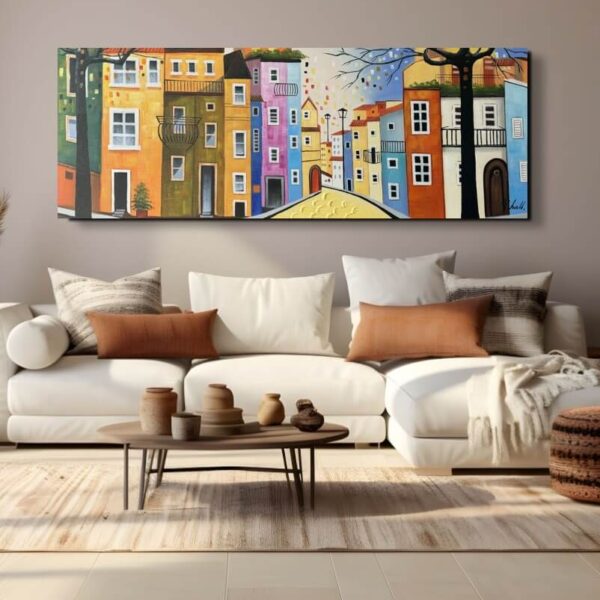 Darüber hinaus kann ein farbenfrohes und abstraktes Wandbild aus Ölfarben einen netten Synergieeffekt mit dem Rest des Hauses bilden. Die meisten Häuser im skandinavischen Stil sind von einer Art Sterilität und minimalistischer Einrichtung geprägt. Die dominierenden Farben sind oftmals schwarz, weiß und grau. Möbel und anderes Dekor geht hierbei oft im Raum „unter. Ein farbenfrohes und abstraktes Wandbild kann hier ein Gegengewicht schaffen, das die Inneneinrichtung farblich ausgleicht.