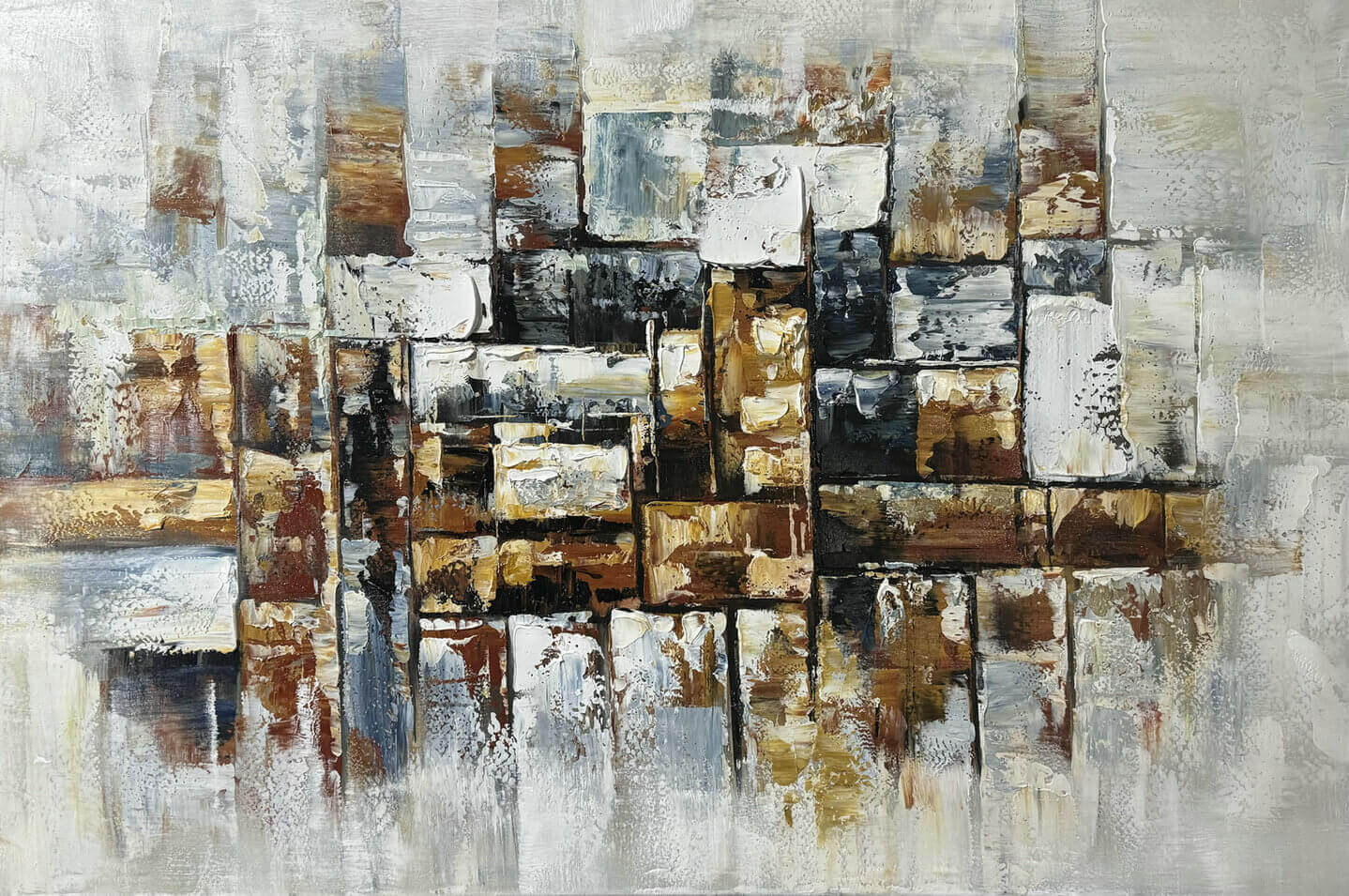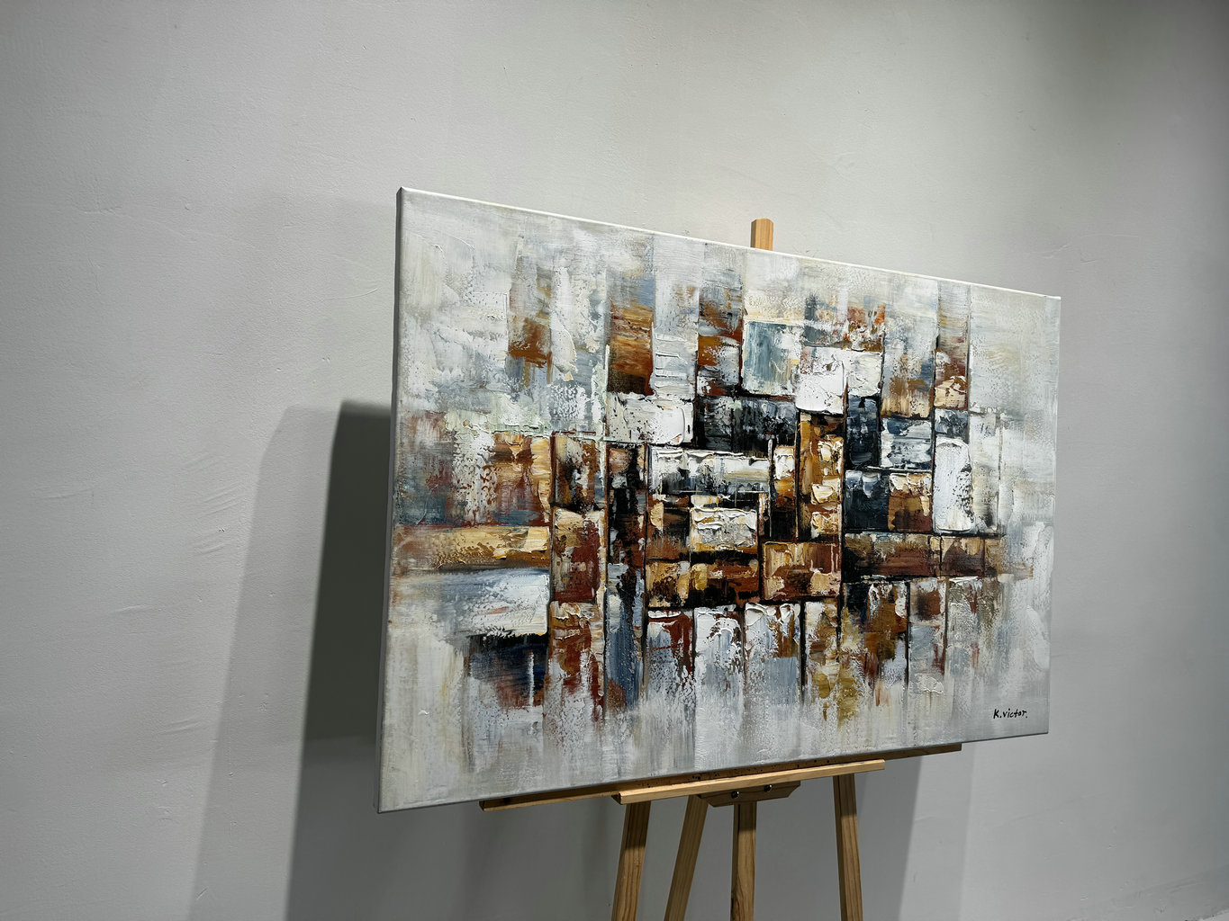 Das Gemälde ist über einen 3,5 cm dicken Blendrahmen gespannt und kann direkt an einer Wand aufgehängt werden.