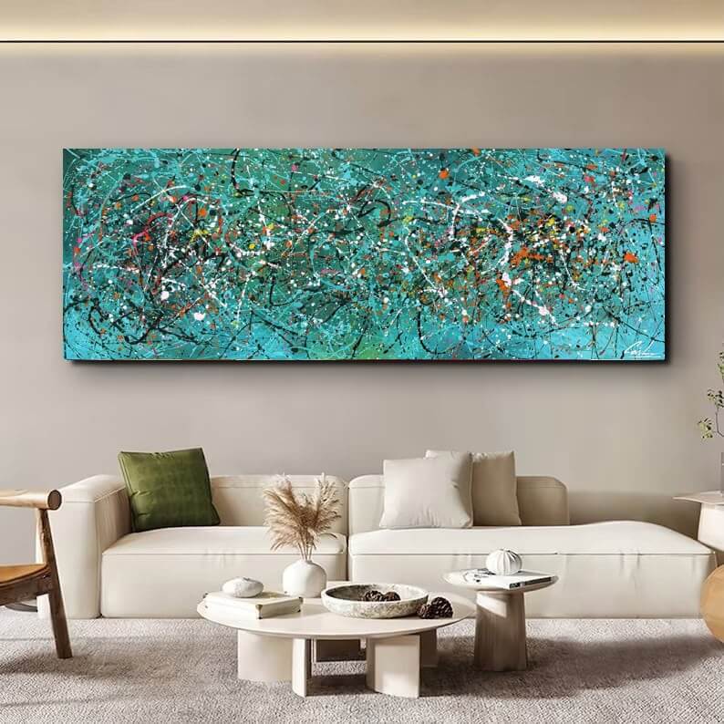 Das Gemälde ist über einen 3,5 cm dicken Blendrahmen gespannt und kann direkt an einer Wand aufgehängt werden.